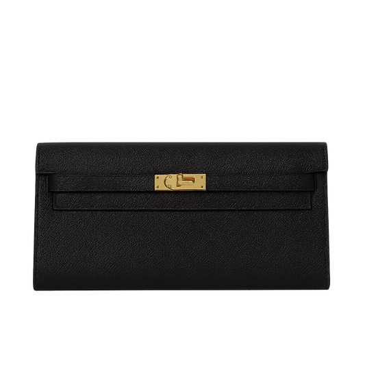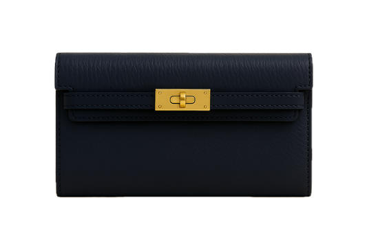 Crafted from supple grained leather with meticulous hand-stitching, the Portefeuille Élégance embodies the same refinement and craftsmanship as its iconic handbag counterpart. Its sleek silhouette is finished with a gleaming turn-lock closure, offering both security and style in one statement piece. Perfectly sized to slip into your favorite tote or carry as a clutch, this wallet is designed for the modern woman who values elegance in every detail.