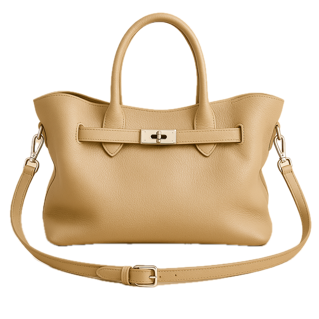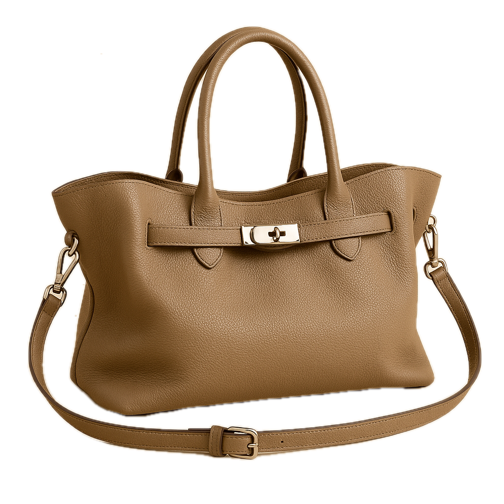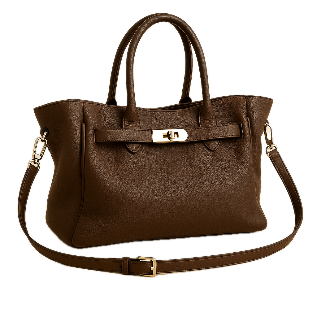 We exclusively use full-grain Italian leather sourced from certified tanneries in Tuscany. This premium leather is chosen for its natural beauty, exceptional durability, and the way it develops a rich patina over time—ensuring your bag only becomes more beautiful with age.